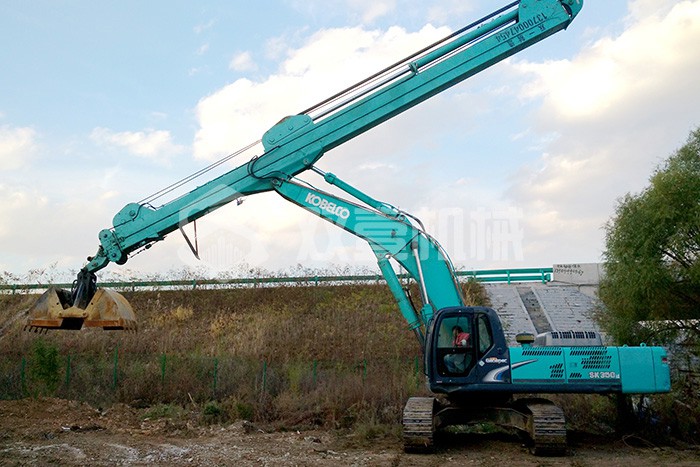 超長四節臂:總長度可達48米,臂內可再伸出3節,施工深度42.5米,配帶貝殼斗1.8立方或挖掘斗1.0立方。