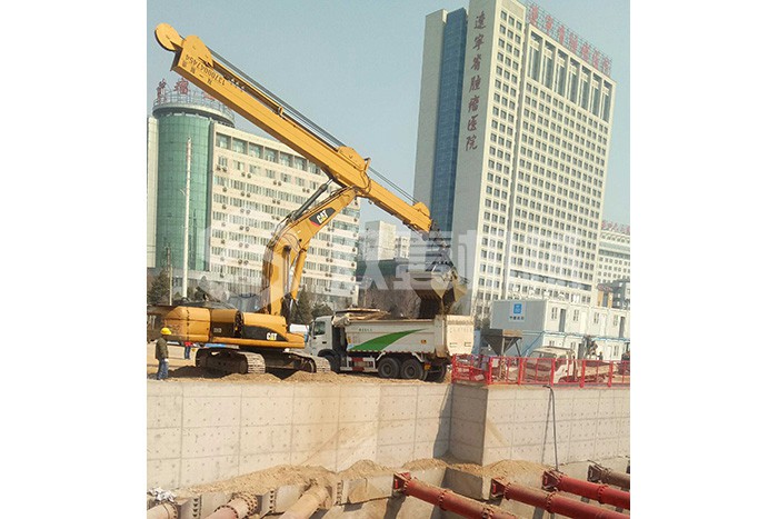 超長四節(jié)臂:總長度可達(dá)48米,臂內(nèi)可再伸出3節(jié),施工深度42.5米,配帶貝殼斗1.8立方或挖掘斗1.0立方。